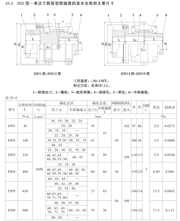 JSD型單法蘭聯接型聯軸器減振性好,使用壽命長,承受變動載荷范圍大,起動安全,傳動效率高,運行可靠,噪聲低,潤滑好。