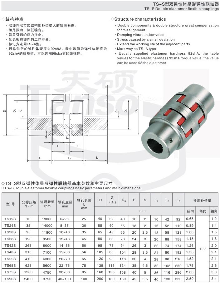 3.與其它聯軸器相比,星形彈性聯軸器具有以下特點: