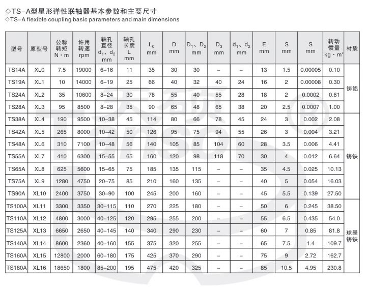 星形彈性聯(lián)軸器的適用范圍和性能特點